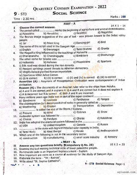 Hey guys! Preparing for your 9th-grade social science quarterly exams can feel like a mountain to climb, but don’t worry, we’re here to break it down. This guide focuses on the 2023 quarterly question paper, offering insights and strategies to help you ace your exams. We’ll delve into the key topics, types of questions you might encounter, and effective ways to study. Understanding the exam structure is crucial for success, so let’s jump right in. This article is your ultimate resource, providing everything you need to know about the 9th standard social science quarterly question paper in 2023. Let’s get started! We are going to examine the specifics of the social science curriculum, from history and civics to geography and economics. We will then look at the different question formats and offer advice on how to respond. Following that, we will explore some study strategies and resources to help you study more effectively. This will help you succeed on your exams. We aim to equip you with the knowledge and confidence to approach your exams with ease. So, buckle up; your path to acing the 9th-grade social science exams starts here. The quarterly exams are a significant checkpoint in the academic year. They test your understanding of the concepts covered in the first term. This guide is designed to clarify the exam pattern, the types of questions that may appear, and the best ways to prepare. Whether you’re struggling with a particular subject or aiming for top marks, the insights provided here will be beneficial. Let’s get you ready to conquer those exams! We are going to go over the topics in detail so you will know exactly what to anticipate. Knowing the format and the subject matter in advance is an advantage. You can improve your exam performance by using the methods provided. This will reduce exam anxiety and boost your confidence. By using the knowledge in this guide, you will be well-prepared to perform well in your social science exams. We want you to feel confident and ready when you walk into the exam room. Let’s make sure you know what to anticipate so you can feel confident and succeed.