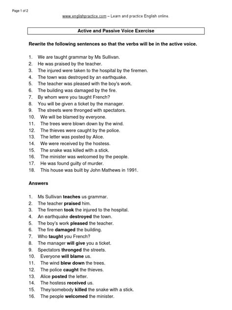 So, where do you get these magical worksheets? Many educational websites offer free worksheets on active and passive voice for Class 8 students with answers! Just a quick search using terms like “active and passive voice worksheet class 8 PDF with answers” will bring up tons of options. Make sure to choose worksheets tailored to Class 8 level. Look for ones with clear instructions and a variety of exercises to challenge you. You can find worksheets that cover a range of difficulty levels, from basic sentence transformations to more complex exercises. Some worksheets might include additional exercises, such as identifying the active or passive voice in different sentences, or even writing your own sentences using each voice. When choosing your worksheet, consider your specific needs. Do you need more practice with a particular tense or sentence structure? Finding worksheets with answers is also really important. This allows you to check your work, identify any mistakes, and learn from them. The answers also help to consolidate your learning. Moreover, many educational platforms offer interactive exercises and quizzes. Websites also provide explanations of the concepts. These resources can be a great way to reinforce your understanding. So, get online and start your search. Find the right worksheets, download them, and get ready to transform your writing skills!