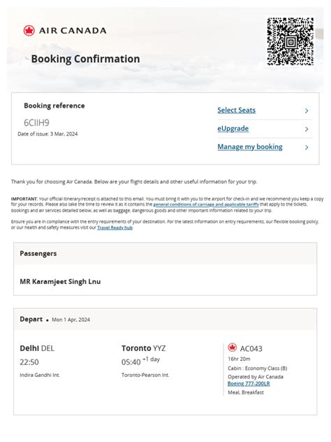 Managing Your Air Canada Booking