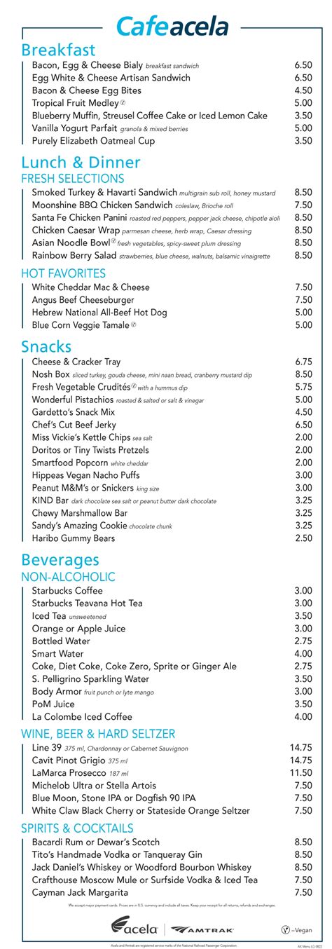 Amtrak Acela Cafe Menu: Your Guide to Onboard Dining
