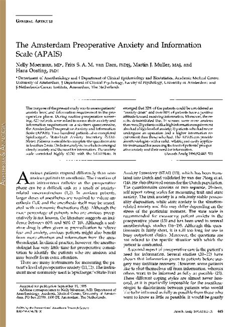 APAIS: Understanding And Managing Preoperative Anxiety