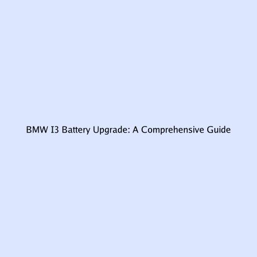 BMW I3 Battery Upgrade: A Comprehensive Guide