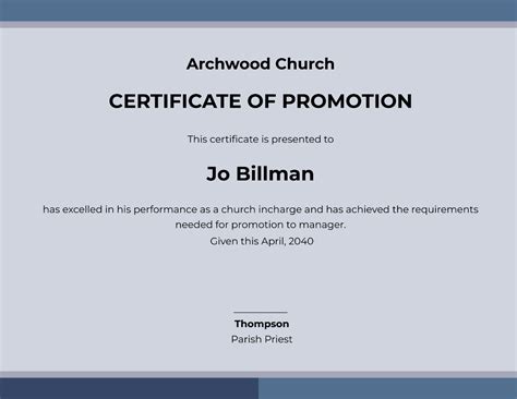 Church promotion certificates are a powerful tool for recognizing and celebrating achievements within your church community. By implementing these creative ideas and design tips, you can foster a stronger sense of belonging, encourage greater participation, and create a positive atmosphere within your church. So, get creative, be intentional, and start celebrating the wonderful contributions of your church members today! Guys, you got this! Remember that even small acts of recognition can have a big impact on morale and motivation. Think of it as planting seeds of appreciation that will blossom into a thriving and engaged church community. By investing in your members, you’re investing in the future of your church! Now go out there and make some awesome certificates!