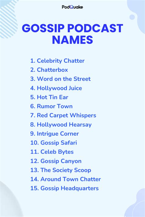 Hey guys, are you looking to start a podcast that’s all about the juicy bits, the behind-the-scenes drama, and all the latest celebrity gossip? You’ve come to the right place! Coming up with a killer name for your podcast is super important. It’s like the first impression, you know? It needs to grab people’s attention, hint at the kind of content you’ll be serving, and, most importantly, be memorable. We’re talking about i-gossip podcast name ideas that will make people hit that subscribe button faster than you can say “viral”! Think about it, the podcasting world is HUGE right now, and standing out is key. Your name is your brand, your identity. It needs to be catchy, witty, and perfectly encapsulate the vibe of your show. Whether you’re planning to cover Hollywood’s hottest tea, reality TV drama, or even just the everyday gossip that keeps us all entertained, we’ve got some seriously awesome name ideas brewing. We’ll dive deep into what makes a great podcast name, explore different angles you can take, and give you a massive list to get your creative juices flowing. So, grab your favorite beverage, settle in, and let’s find that perfect name that’ll have everyone talking!