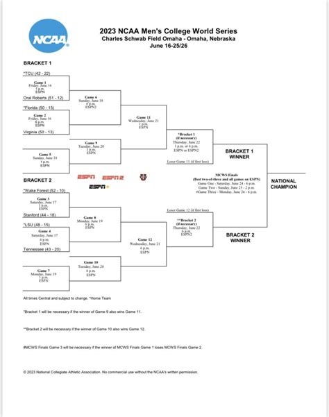 Before diving into the TV schedule, it’s essential to understand the College World Series format . The CWS features eight teams, divided into two four-team brackets. These teams compete in a double-elimination format within their respective brackets. The winners of each bracket then face off in a best-of-three championship series to determine the national champion. This structure ensures that the teams that make it to the final round have truly earned their spot, making every game a high-stakes battle.