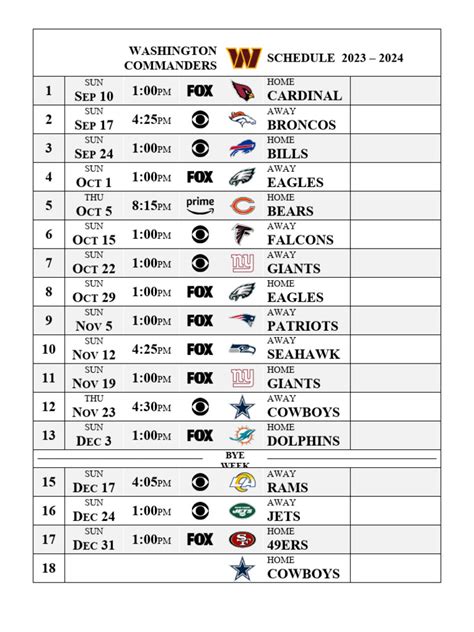 Commanders Schedule: Your Guide to Game Days