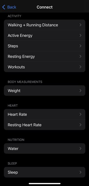 6. Connect to Apple Health: You should see Apple Health listed as an option. Tap on it.
