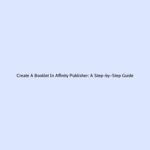 Create A Booklet In Affinity Publisher: A Step-by-Step Guide