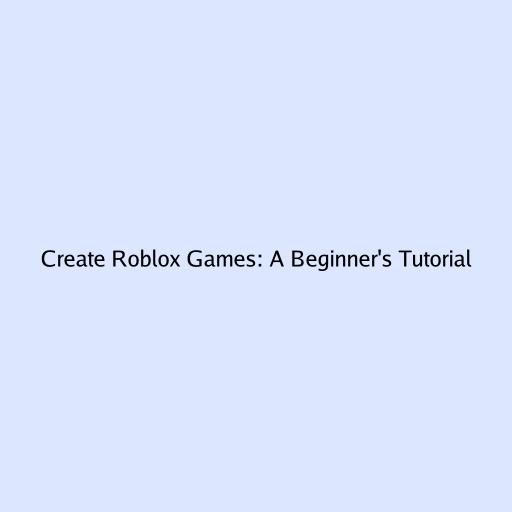 Create Roblox Games: A Beginner’s Tutorial
