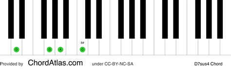 To play a D7sus4 chord, simply find these notes on your keyboard and play them together. A common way to voice this is: