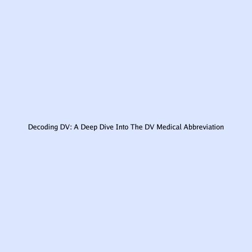 Hey guys, let’s dive into something that might sound a little medical-ish but is super important to understand: the DV medical abbreviation . You’ve probably seen it floating around if you’ve ever dealt with healthcare or medical documentation. So, what exactly does DV stand for , and why is it so significant? This article is your guide to unraveling the mystery of the DV abbreviation, covering its various meanings, and helping you understand where you might encounter it. We’ll explore the common contexts where DV pops up and how to interpret it correctly. Whether you’re a healthcare professional, a patient, or just curious, understanding DV can make a real difference in navigating the healthcare landscape. Let’s get started and decode what this abbreviation means in the medical world!
