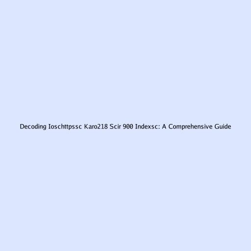 Decoding Ioschttpssc Karo218 Scir 900 Indexsc: A Comprehensive Guide