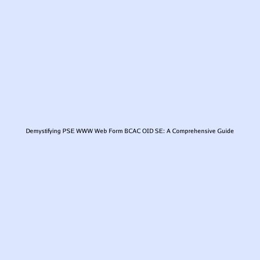 Demystifying PSE WWW Web Form BCAC OID SE: A Comprehensive Guide