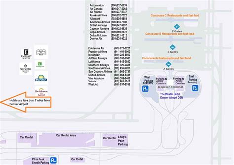 The Jeppesen Terminal is where you’ll find ticketing, baggage claim, security checkpoints, and various services. The concourses are accessible via the underground train system, which runs frequently and efficiently. Concourse A is primarily used by United Airlines, Concourse B is home to United and Southwest, and Concourse C is used by several other airlines, including Frontier. When you are looking at the Denver Airport map , pay close attention to the gate numbers. These numbers usually tell you which concourse you need to go to. For example, if your gate is A32, you’ll head to Concourse A. The airport is huge, so make sure you factor in travel time between the terminal and your gate, especially if you have a connecting flight. Don’t be afraid to ask for help! Airport staff and volunteers are available throughout the airport and are happy to assist. They can provide directions, answer questions, and generally make your experience easier. Also, the Denver Airport map is available at information kiosks and on the airport’s official website and mobile app.