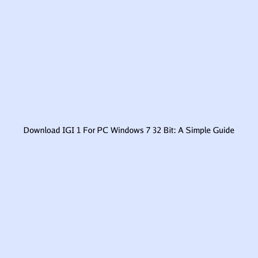 Download IGI 1 For PC Windows 7 32 Bit: A Simple Guide