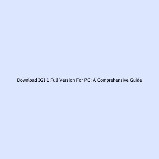 Download IGI 1 Full Version For PC: A Comprehensive Guide