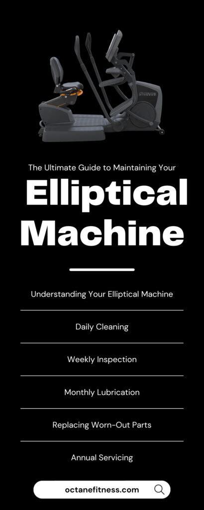 • Regular Maintenance: Perform regular maintenance, such as lubrication and cleaning, to keep your elliptical machine in good working order and prevent potential issues.