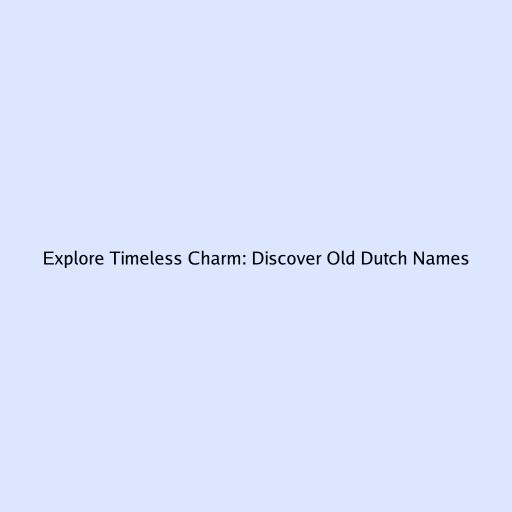 Explore Timeless Charm: Discover Old Dutch Names