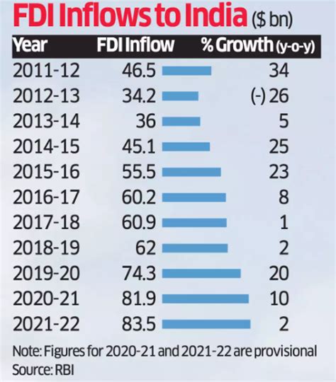 India has been steadily attracting FDI due to its large and growing market, skilled workforce, and relatively stable political environment. The government has also been actively promoting FDI through various policy reforms and investment promotion initiatives. These efforts are aimed at making India an even more attractive destination for foreign investors, further fueling economic growth and development.