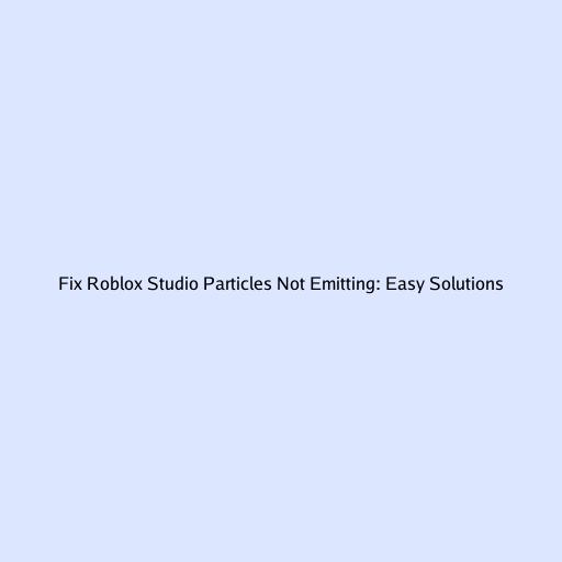 Fix Roblox Studio Particles Not Emitting: Easy Solutions