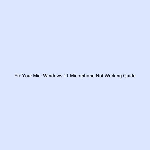 Fix Your Mic: Windows 11 Microphone Not Working Guide
