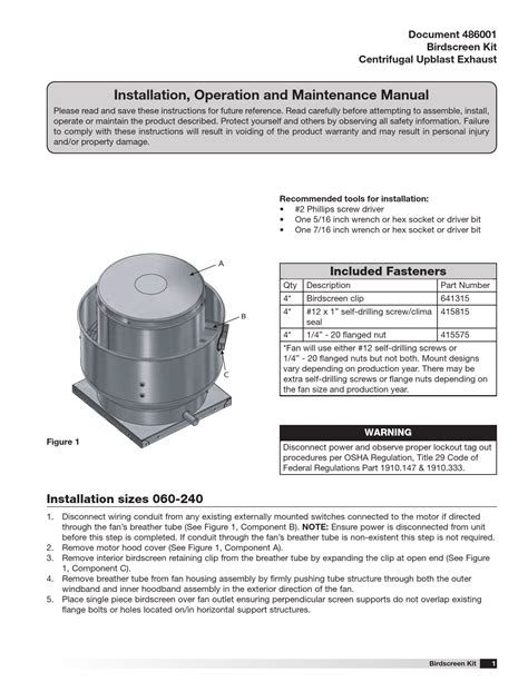 - Annually: Inspect the wiring and connections. Lubricate the motor (if applicable).