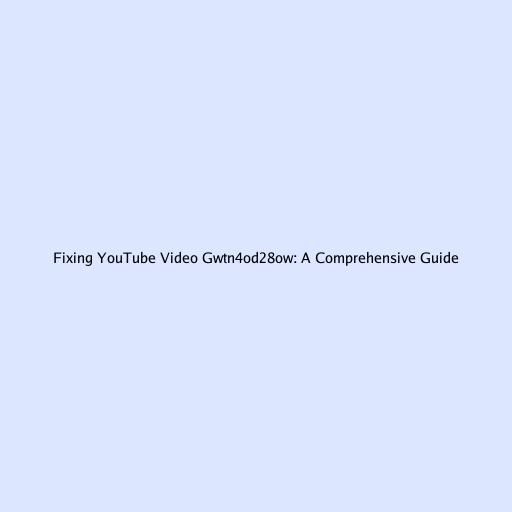Fixing YouTube Video Gwtn4od28ow: A Comprehensive Guide