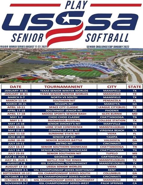 Guys, the Florida USSSA softball tournaments 2025 schedule is your ticket to some of the best amateur softball action around. Whether you’re aiming for a championship title, looking to develop your skills, or just want to be part of an exciting sporting community, these tournaments offer something for everyone. Start planning, get your team ready, and prepare for an unforgettable season on the diamond in the Sunshine State. Good luck out there!