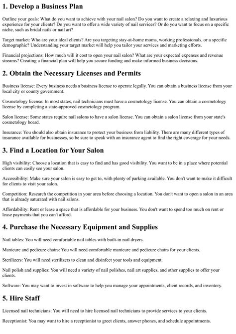 • Consider Specialization: Find a niche. Do you love doing intricate nail art? Or maybe you’re great at pedicures? Specializing can help you stand out from the competition. Finding what you love is just as important as the customers!