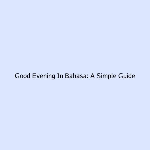 Good Evening In Bahasa: A Simple Guide