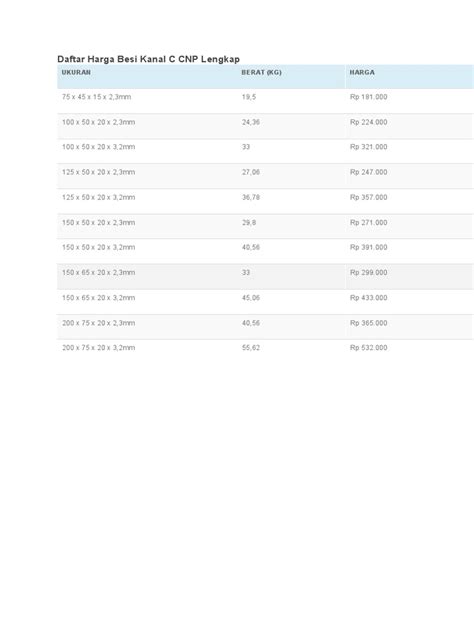 Nah, ini dia yang kalian tunggu-tunggu! Biar ada gambaran jelas, kita coba kasih kisaran harga besi C channel yang berlaku di tahun 2024 ini. Perlu diingat ya, guys, ini hanya perkiraan dan bisa berbeda-beda tergantung faktor yang udah kita bahas tadi. Jadi, ini bukan patokan mutlak, tapi lebih ke arah referensi biar kalian punya gambaran awal. Untuk besi C channel ukuran kecil, misalnya C 75 x 35 x 10 dengan ketebalan 0.6 mm, harga besi C channel per meter biasanya berkisar antara Rp 15.000 hingga Rp 25.000. Kalau untuk ukuran yang lebih standar seperti C 100 x 50 x 15 dengan ketebalan 0.8 mm, harganya bisa naik sedikit, mungkin di rentang Rp 25.000 hingga Rp 40.000 per meternya. Nah, kalau kalian butuh yang lebih besar dan tebal, misalnya C 150 x 50 x 20 dengan ketebalan 1.0 mm, siap-siap merogoh kocek lebih dalam. Harganya bisa mulai dari Rp 40.000 hingga Rp 60.000 per meter. Perlu diingat juga, besi C channel ini biasanya dijual per batang dengan panjang standar, misalnya 6 meter. Jadi, kalau kalian menghitung harga per batang, tinggal dikalikan aja ya. Misalnya, besi C 100 x 50 x 15 x 6 meter dengan harga per meter Rp 30.000, berarti harga per batangnya sekitar Rp 180.000. Tapi, ini hanya ilustrasi , guys. Harga sebenarnya bisa lebih tinggi atau lebih rendah. Harga besi C channel per batang untuk ukuran yang paling umum seperti C 75 atau C 100 dengan panjang 6 meter dan ketebalan standar (0.6 - 0.8 mm) mungkin ada di kisaran Rp 100.000 hingga Rp 250.000. Untuk ukuran yang lebih besar atau ketebalan lebih premium, harganya bisa tembus Rp 300.000 hingga Rp 500.000 per batang, bahkan lebih. Produsen seperti Krakatau Steel atau Cakra Steel biasanya punya daftar harga sendiri yang bisa kalian cek langsung di website mereka atau tanyakan ke distributor resmi. Tapi, hati-hati juga, guys. Kadang ada penawaran harga yang terlalu murah, nah itu perlu dicurigai. Pastikan kalian beli dari supplier yang reputable dan terpercaya . Jangan sampai tergiur harga murah tapi kualitasnya abal-abal. Cek sertifikat SNI kalau perlu, biar lebih tenang. Tips tambahan nih, kalau proyek kalian butuh banyak besi C channel, coba deh nego harga untuk pembelian grosir. Siapa tahu bisa dapat harga spesial, kan? Dan selalu simpan bukti pembelian atau invoice ya, buat jaga-jaga kalau ada masalah di kemudian hari. Jadi, intinya, harga itu bervariasi banget. Faktor utama tetaplah ukuran, ketebalan, merek, dan juga kondisi pasar saat kalian membeli. Jadi, saran saya, lakukan riset pasar kecil-kecilan sebelum memutuskan pembelian. Hubungi beberapa supplier, minta penawaran, bandingkan. Jangan cuma terpaku pada satu sumber. Dengan begitu, kalian bisa mendapatkan harga besi C channel terbaik sesuai dengan kualitas yang kalian butuhkan. Ingat, konstruksi yang baik dimulai dari pemilihan material yang tepat dan berkualitas. Jangan kompromi soal ini, guys! Semakin baik kualitas materialnya, semakin kokoh dan tahan lama bangunan kalian. Ini penting banget buat keselamatan penghuni bangunan juga lho. Jadi, jangan pernah merasa sayang untuk mengeluarkan sedikit lebih banyak uang demi kualitas yang superior. Ujung-ujungnya, kalian juga yang untung karena nggak perlu biaya perawatan ekstra di kemudian hari. Penting juga untuk menanyakan ketersediaan stok saat menghubungi supplier, karena kadang barang yang lagi banyak dicari bisa cepat habis. Jadi, jangan sampai kalian sudah cocok dengan harganya tapi barangnya kosong, kan repot. Selalu konfirmasi ketersediaan barang sebelum membuat komitmen pembelian. Ini akan menghemat waktu dan tenaga kalian, serta memastikan kelancaran proyek yang sedang berjalan. Pastikan juga untuk menanyakan detail spesifikasi produk, seperti berat per batang atau per meter, agar perhitungan kebutuhan material kalian lebih akurat. Detail kecil seperti ini bisa sangat berpengaruh pada total biaya proyek kalian, guys!