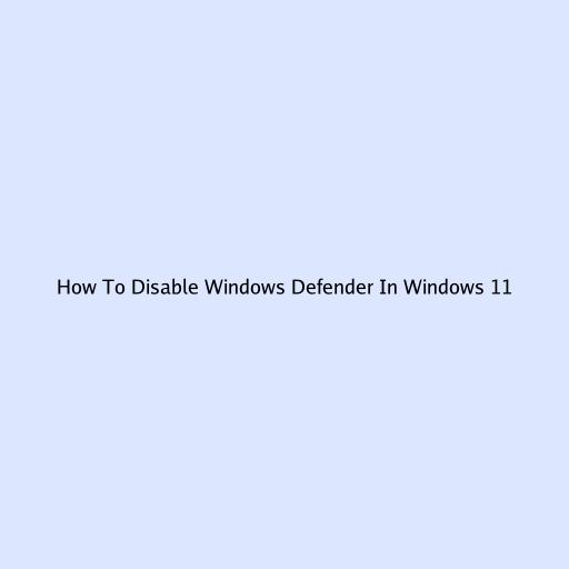 How To Disable Windows Defender In Windows 11