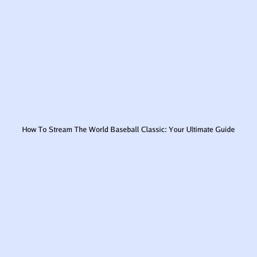 How to Stream the World Baseball Classic: Your Ultimate Guide