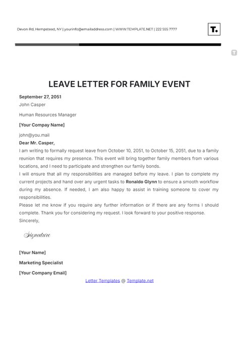 Key Elements of a Family Event Leave Letter