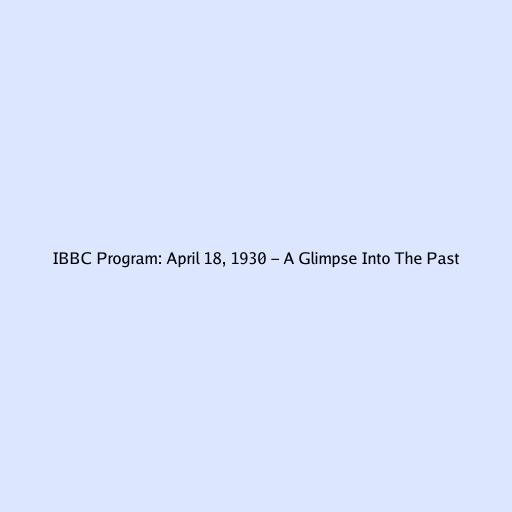 IBBC Program: April 18, 1930 - A Glimpse into the Past
