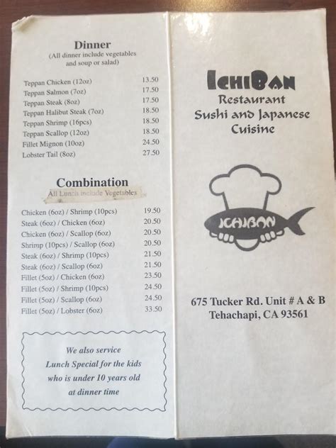 Alright, let’s get down to the nitty-gritty: the menu! When you visit Ichiban Restaurant Tehachapi , there are a few dishes that you absolutely cannot miss. First off, if you’re a sushi fan, you have to try their signature sushi rolls. These are not your average rolls; they are culinary masterpieces. Each roll is a unique combination of flavors and textures, with fresh fish, perfectly seasoned rice, and creative toppings. Whether you’re a fan of classic rolls or adventurous flavor combinations, their signature rolls are sure to impress. Next up, their ramen is something you definitely have to experience. Ichiban’s ramen is truly exceptional. The broth is rich, savory, and full of umami flavor. The noodles have the perfect texture, and the toppings are fresh and delicious. If you’re a fan of ramen, you’ll be blown away by their attention to detail. I’ve tried many ramen places, and Ichiban’s ramen always stands out. I think the secret is in the broth, which is simmered for hours to develop its complex flavors. Beyond sushi and ramen, Ichiban Restaurant offers a range of other Japanese dishes. Their tempura is always a hit, with perfectly crispy vegetables and seafood. The teriyaki dishes are also a must-try, with tender, marinated meat and a sweet and savory sauce. If you’re looking for something lighter, their udon noodle soups are a great option. Overall, the menu at Ichiban is diverse and offers something for everyone. From classic dishes to creative specialties, you’re sure to find something you love. Be sure to ask your server for recommendations, and don’t be afraid to try something new. You might just discover your new favorite dish! Remember, they also have seasonal specials, so there is always something new to discover.