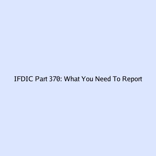 IFDIC Part 370: What You Need To Report