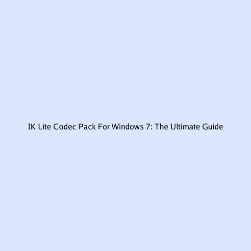 IK Lite Codec Pack for Windows 7: The Ultimate Guide