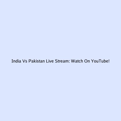 India Vs Pakistan Live Stream: Watch On YouTube!