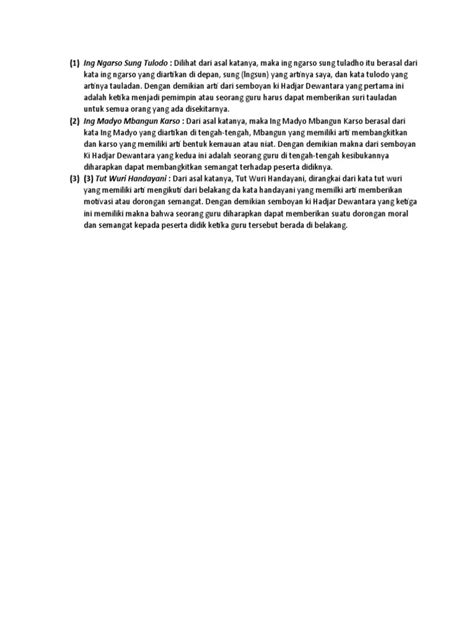 Hey guys! Pernah dengar istilah Ingarso Sung Tulodo ? Mungkin terdengar asing buat sebagian orang, tapi sebenarnya ini adalah sebuah konsep keren banget yang punya makna mendalam, lho. Konsep ini berasal dari bahasa Jawa, dan kalau diartikan secara harfiah, Ingarso Sung Tulodo itu berarti “di depan memberi contoh” atau “yang di depan menjadi teladan”. Wah, kedengarannya mulia banget ya? Nah, dalam artikel ini, kita bakal kupas tuntas soal Ingarso Sung Tulodo , mulai dari arti sebenarnya, filosofinya, sampai gimana sih kita bisa menerapkan konsep ini dalam kehidupan sehari-hari. Siap-siap buat dapat pencerahan, ya!