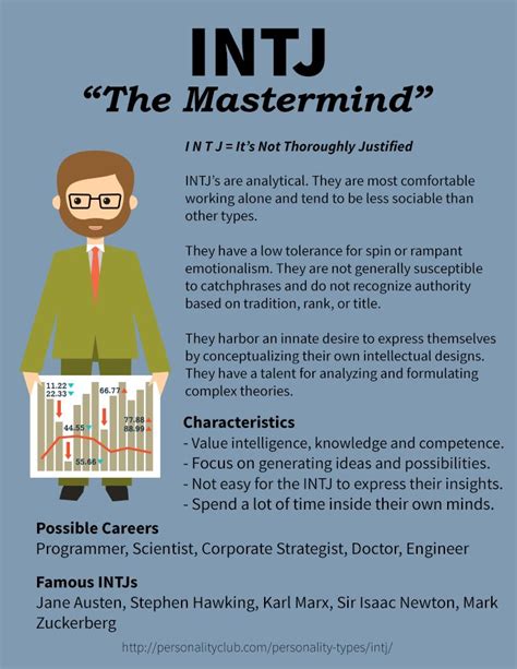 • Independent Thought: INTJs are fiercely independent thinkers. They don’t blindly accept conventional wisdom or follow the crowd. They prefer to form their own opinions based on careful analysis and critical thinking. They are not afraid to challenge the status quo or to go against the grain if they believe it is necessary. This independence of thought can sometimes make them seem aloof or unconventional, but it also allows them to see things from a unique perspective.