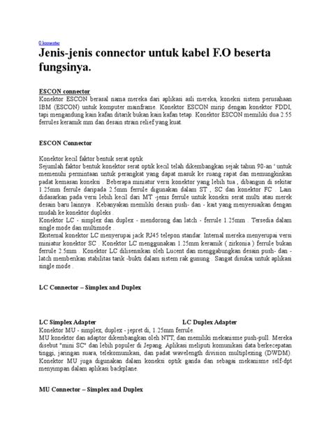 Hai, guys! Pernah dengar tentang fiber optik? Teknologi super keren ini udah jadi tulang punggung internet kita, lho. Tapi, pernah kepikiran nggak sih gimana caranya kabel-kabel tipis itu nyambung satu sama lain? Nah, jawabannya ada di konektor fiber optik ! Konektor ini ibaratnya colokan dan stop kontak buat kabel fiber optik. Tanpa mereka, sinyal cahaya nggak bakal bisa pindah dari satu titik ke titik lain. Makanya, penting banget buat kita kenalan sama berbagai tipe konektor fiber optik yang ada. Dengan memahami jenis-jenisnya, kamu bisa lebih gampang milih yang pas buat kebutuhanmu, entah itu buat jaringan di rumah, kantor, atau bahkan skala industri yang lebih besar. Soalnya, tiap konektor punya kelebihan dan kekurangan masing-masing, guys. Ada yang ukurannya kecil, ada yang gampang dipasang, ada juga yang performanya paling joss. Yuk, kita bedah satu per satu biar makin paham!
