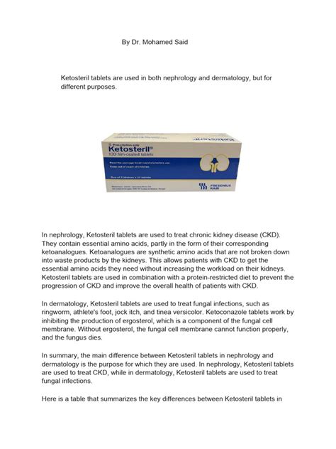• Discussion: You and your doctor will discuss the potential benefits and risks of using ketosteril tablets. This will allow you to make an informed decision about your treatment plan. Remember, it’s about what is best for you.