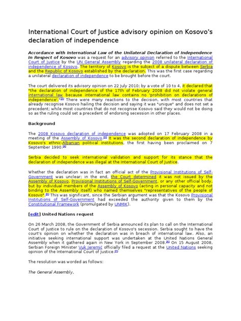First off, what exactly is the Kosovo Advisory Opinion, and why does it matter so much? Back in 2008, Kosovo declared its independence from Serbia. This was a pretty huge moment, and it didn’t go unopposed. Serbia, understandably, was not happy about it. To get some clarity and legitimacy on the international stage, Kosovo’s declaration was referred to the International Court of Justice (ICJ) . The question put before the ICJ was basically: “Is Kosovo’s unilateral declaration of independence in accordance with international law?” The ICJ then issued its advisory opinion on July 22, 2010. This opinion didn’t legally recognize Kosovo’s independence, but it did state that the declaration did not violate general international law. This was a massive win for Kosovo and a significant moment for international relations and the principle of self-determination. It’s the kind of legal landmark that people will be talking about for ages, so knowing how to cite it correctly is key for anyone studying or working in international law, political science, or history. The opinion itself is quite detailed, exploring various aspects of international law, statehood, and the right to secession. It delved into the historical context, the legal framework governing declarations of independence, and the principle of territorial integrity versus the right to self-determination. The court carefully navigated complex legal arguments, and its findings have had a lasting impact on discussions surrounding statehood and sovereignty in the 21st century. Understanding the nuances of this opinion requires a good grasp of international legal principles, and having the correct citation ensures that anyone who wants to delve deeper can easily find the source material. It’s not just about giving credit; it’s about enabling further research and ensuring the accuracy of legal and historical discourse. The ICJ’s role as the principal judicial organ of the United Nations means its opinions carry significant weight, even advisory ones. They serve to clarify complex legal issues and provide guidance to states and international organizations. The Kosovo case is a prime example of how the ICJ can be utilized to address sensitive geopolitical disputes, offering a legal perspective that can inform political processes and international recognition. So, when you’re referencing this pivotal legal document, you want to do it with precision and confidence, showing that you’ve done your homework and respect the gravity of the source.