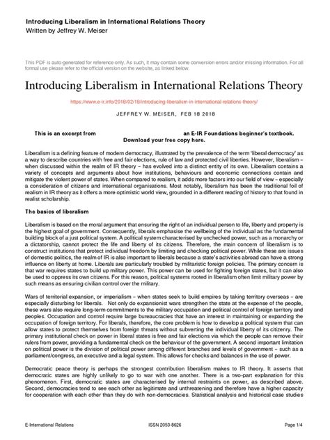 Liberal Theory In International Relations Explained