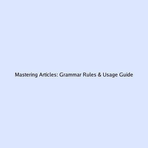 Mastering Articles: Grammar Rules & Usage Guide