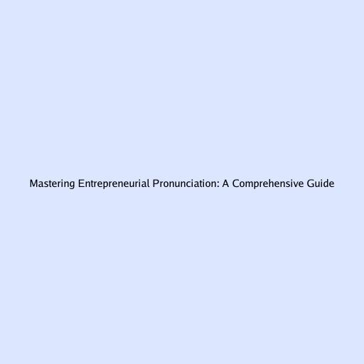 Mastering Entrepreneurial Pronunciation: A Comprehensive Guide