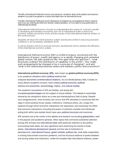 Hey everyone! Ever wondered how the big picture of global economics and politics actually works? You know, like why some countries are super rich and others are struggling, or how trade deals are made and what makes them tick. Well, you’re in the right place, guys! We’re diving deep into the study of international political economy , or IPE for short. It’s a super fascinating field that combines economics, political science, and international relations to give us a clearer understanding of the world’s economic and political landscape. Think of it as the ultimate cheat sheet to understanding global power dynamics, trade flows, and how all these things affect our everyday lives, from the price of your coffee to the job market in your town. We’ll break down what IPE is all about, why it’s so important, and how studying it can actually give you a superpower – the power to understand the complex world we live in. So, buckle up, because we’re about to unpack the mysteries of IPE, and trust me, it’s way more interesting than it sounds! We’ll explore the key theories, the historical context, and the real-world implications of this dynamic field. Get ready to have your mind blown, because international political economy is where the action is.