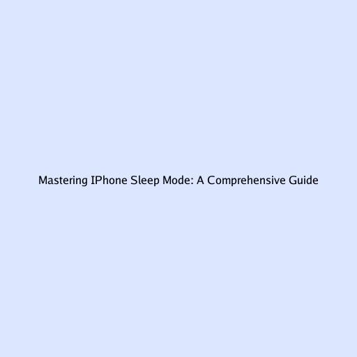 Mastering IPhone Sleep Mode: A Comprehensive Guide
