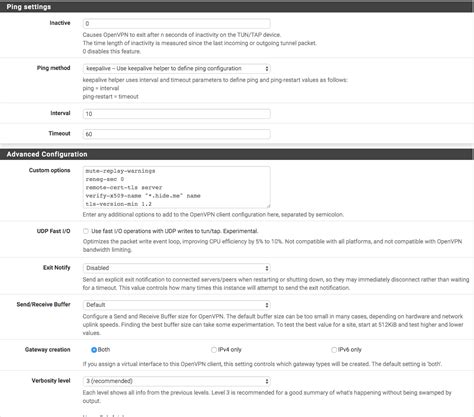 • Device Mode: Select tun for routed IP tunnels, which is the most common setup.